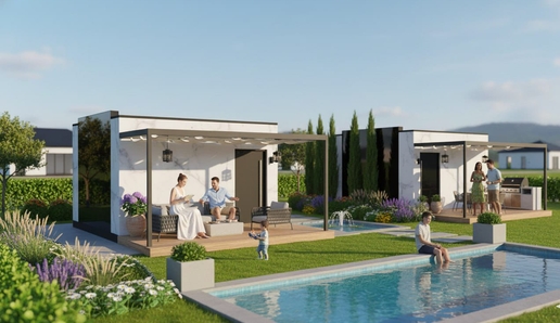 Две отдельные единицы объединяются между собой, создавая дом большей площади. Это может быть теплый контур для обустройства дополнительной комнаты или любого другого помещения, а также открытая веранда или веранда с холодным остеклением. В будущем холодные или открытые части дома могут быть закрыты в общий теплый контур при помощи нанокомпозитных полиуретановых панелей. Чем крупнее объединение, тем выгоднее покупка каждого квадратного метра дома. Это обусловлено снижением затрат на логистику и уменьшением количества элементов в домокомплекте за счет отсутствия стены между объединяющимися домами. Можно купить один дом сейчас, а другой - спустя какое-то время и объединить их за несколько часов. Не нужно ждать, когда появятся деньги на желаемую площадь, не нужно оплачивать дорогостоящие кредиты, покупаем, пользуемся здесь и сейчас, а потом - ОПЯТЬ 25.